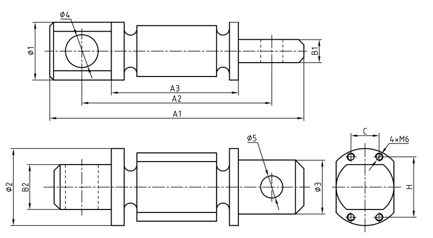 型號(hào) | 量程(kN) | 量程(t) | A1 | A2 | A3 | B1 | B2 | C | H | ?1 | ?2 | ?3 | ?4 | ?5 |