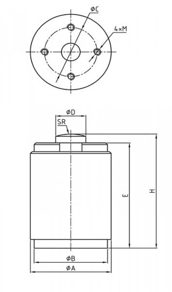 型號 | 量程(kN) | 量程(t) | A | B | C | H | E | M | SR | D |